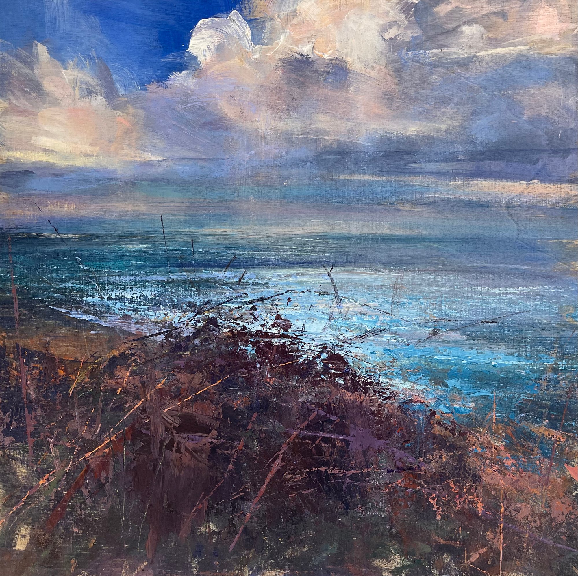 A quiet meeting of elements — sea, land, and sky in shifting conversation.