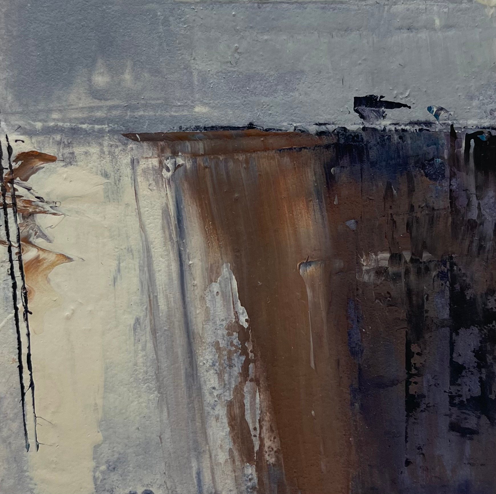 A miniature study exploring the meeting of land and sky. Expressive marks and tonal contrasts evoke Cornwall’s elemental beauty.